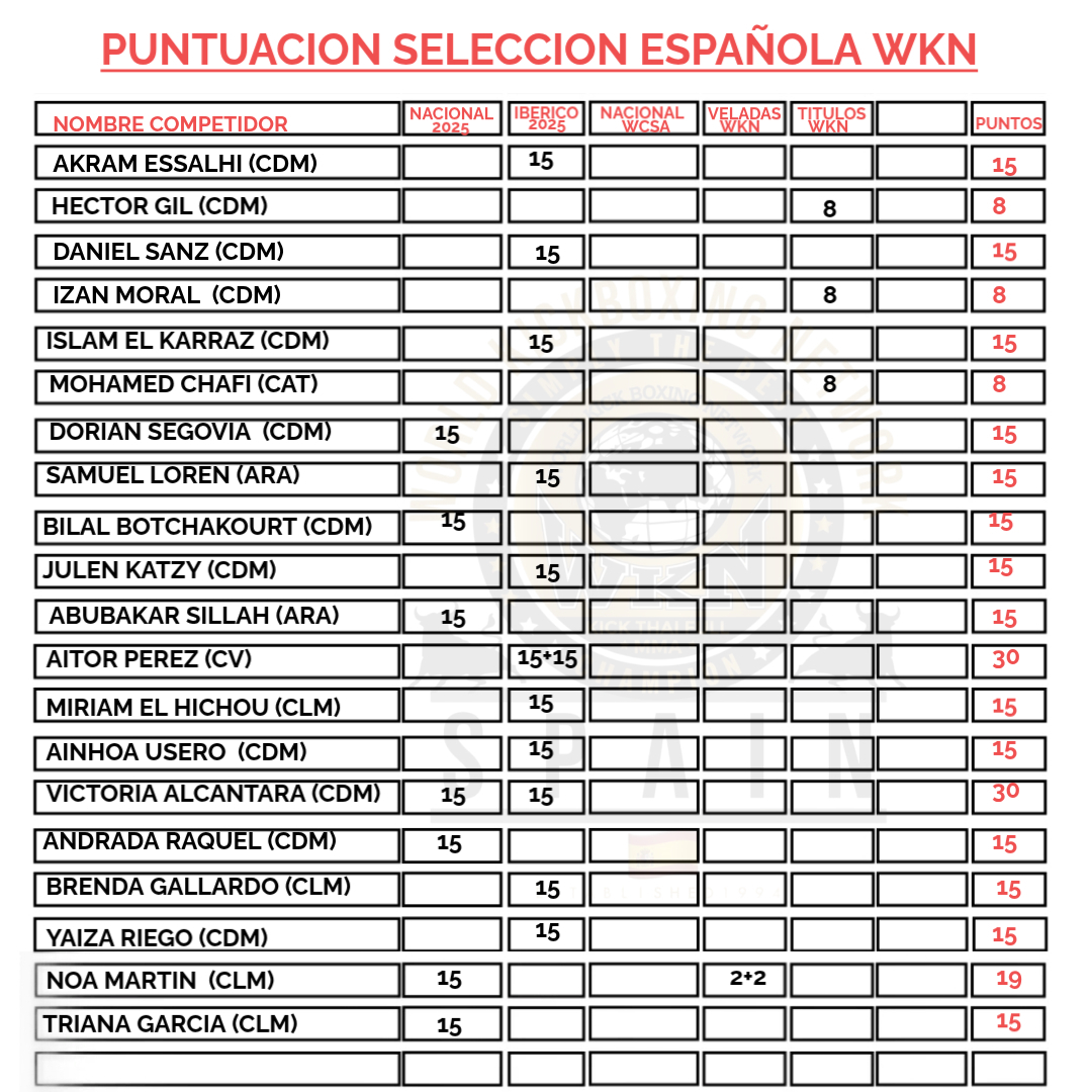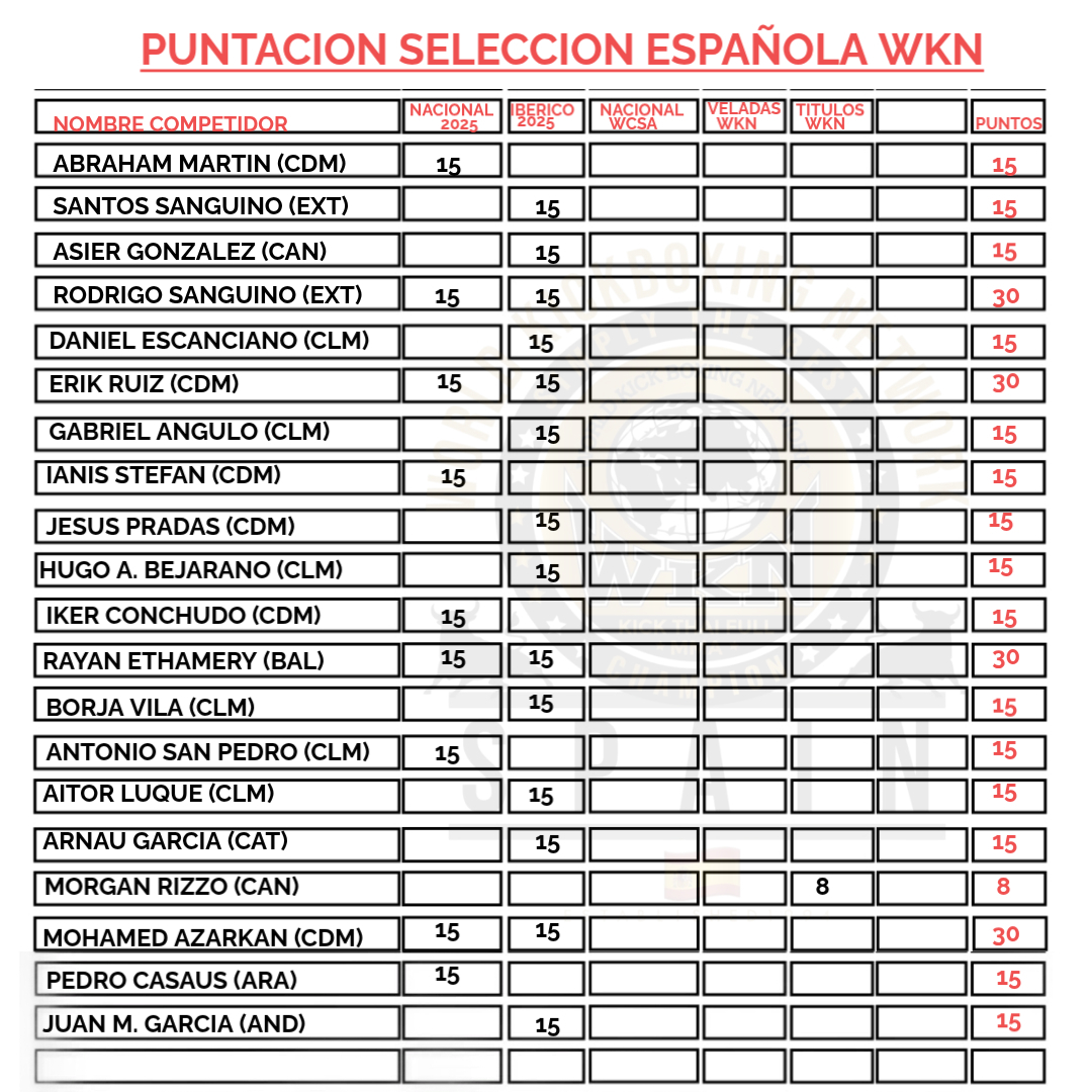 NO SUMARA PUNTOS LOS EVENTOS QUE WKN NO TENGA CONSTANCIA CON ANTERIORIDAD Y SE DE LA ACEPTACION POR SU PARTE , LA OBTENCION DE PUNTOS QUEDA RESERVADA EXCLUSIVAMENTE A COMPETIDORES CON LICENCIA .EN VIGOR WKN