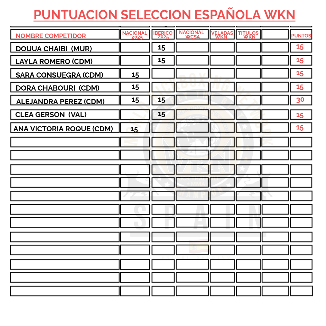 PARA LA SUMA DE PUNTOS SE AVISARA AL RESPONSABLE DE WKN CON ANTELACION A LA PARTICIPACION DE DICHO EVENTO , QUEDARAN EXENTOS DE AVISO LOS CAMPEONATOS OFICIALES WKN Y LOS TITULOS OFICIALES WKN PUESTO QUE SE SUMARA AUTOMATICAMENTE SIN NECESIDAD DE AVISO .